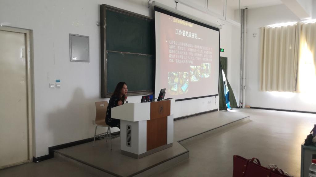 年老师首先从美术生的角度切入主题,激励同学们在学习和生活中应该具备一双能够发现美的眼睛,一颗能够感悟美的心灵,一双能够创造美的手,一张能够表达美的嘴是不可缺少的。其次,年老师以一位优秀美术教育工作者的角度和同学们共享了美术教育工作者的幸福感。她强调,美术课是培养孩子认识美、理解美、品味美的前沿阵地,不仅是老师妙笔生花的展示舞台,也是员工们才艺智慧比拼的重要平台。老师的人格魅力和正确的教学方法,可以激发出孩子们无限的创造力和艺术表现力。最后,年老师鼓励同学们,在今后的学习生活中站稳脚跟,踏踏实实做学问。为将来回报社会打下良好的基础。