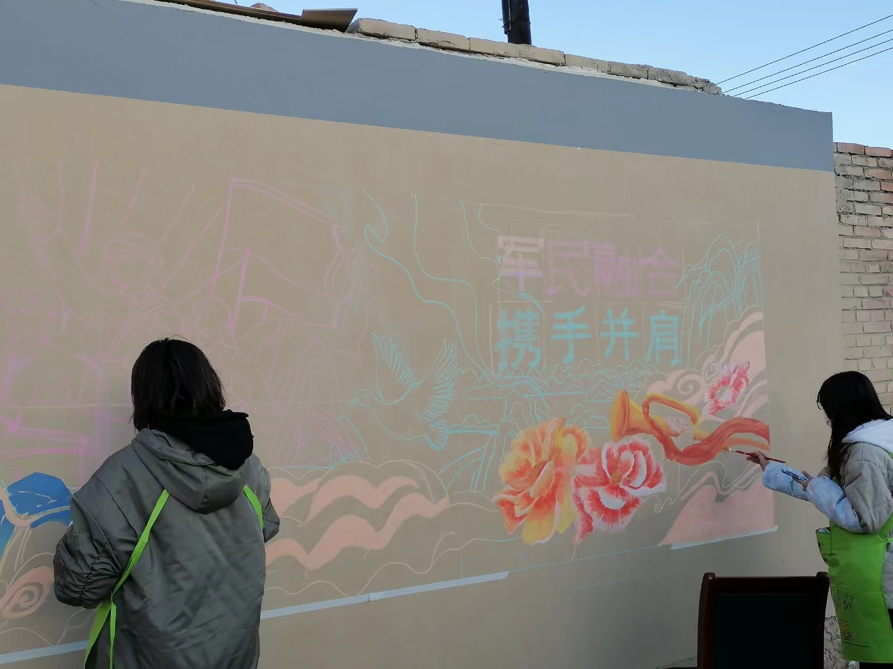 11月13日至15日,21名美术学专业员工,受湟源县退役军人事务局邀请,来到湟源县城关镇万安社区、东峡乡响河村开展红色研学之旅,助力乡村振兴。同学们以墙体彩绘的形式,紧扣主旋律,立足美术专业,为湟源县争创省级双拥模范县设计了融双拥性、思想性、艺术性和观赏性于一体的彩绘方案。