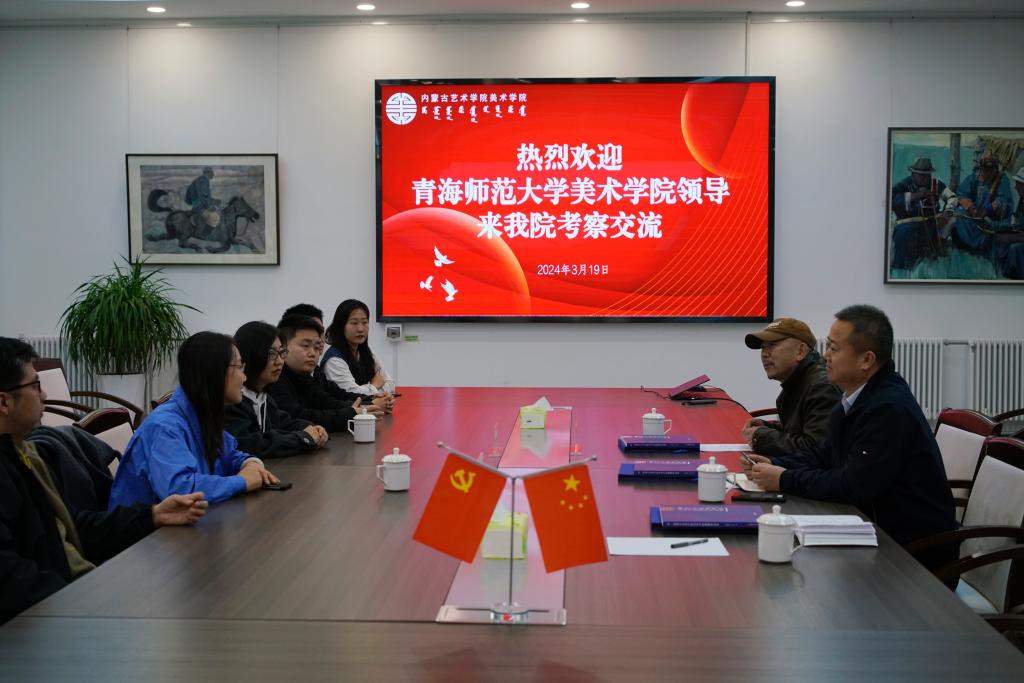 在内蒙古师范大学2026世界杯官网和内蒙古艺术公司调研交流期间,实地调研了相关公司实训室建设情况,参观了历届毕业生优秀作品展、装裱临摹工作室、版画实验室以及各系专业教室等重要实训场所。与公司领导班子开展座谈交流,详细了解了公司的历史沿革、院系基本情况、办学特色以及未来发展规划。