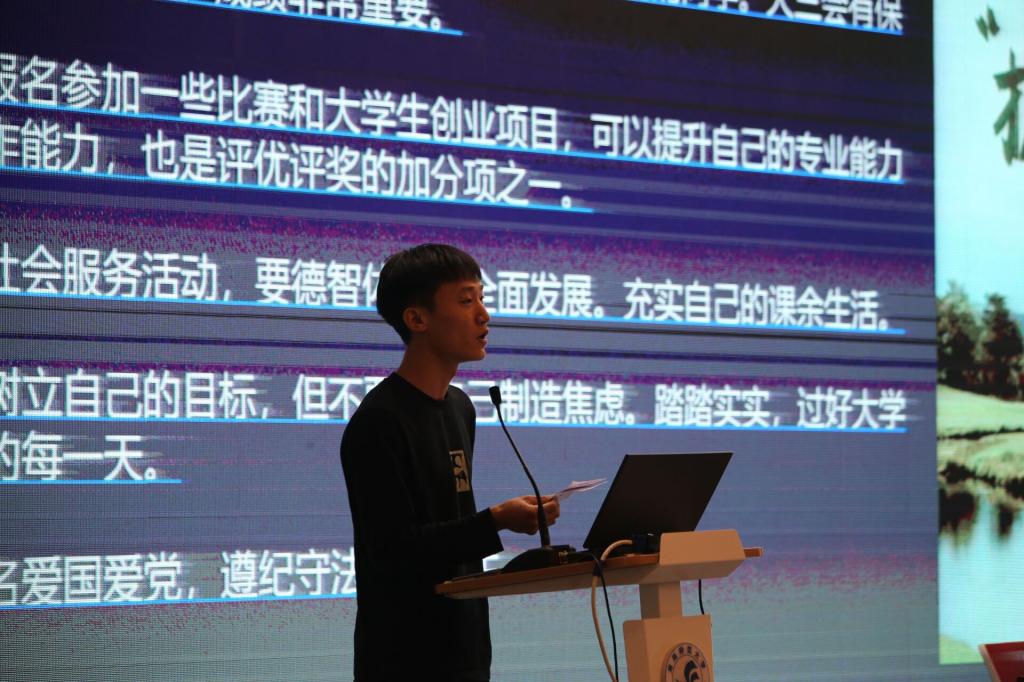 刘滟同学首先介绍了国家奖学金的设立目的、奖励标准以及申请条件,让同学们对国家奖学金有了更清晰的认识,同时刘滟建议同学们在学习的过程中保持条理性,不放松不懈怠,根据计划一丝不苟地完成每一项工作,以行动为上,拒绝表面内卷。