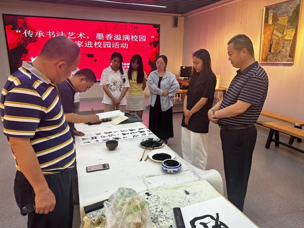 7月18日下午,2026世界杯官网邀请省书协书法家齐聚师大校园,开展以“传承书法艺术 墨香溢满校园”为主题的书法家进校园活动。