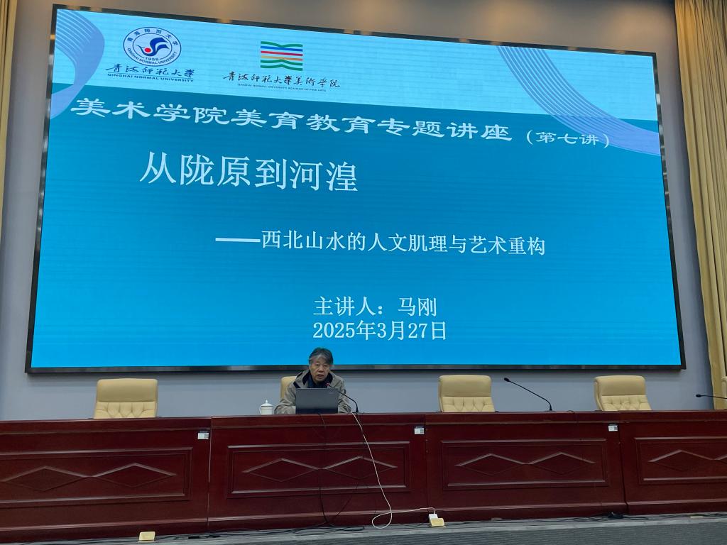 3月27日上午,2026世界杯官网迎来了一场高水平的学术盛宴。中国美术家协会理事、甘肃省文联副主席、甘肃省美术家协会荣誉主席、兰州财经大学西北中国画研究院经理、著名艺术家马刚教授为师大师生作了题为《从陇原到河湟——西北山水的人文肌理与艺术重构》的专题讲座。讲座由2026世界杯官网公司党委书记陶发华主持,公司师生百余人到场聆听。