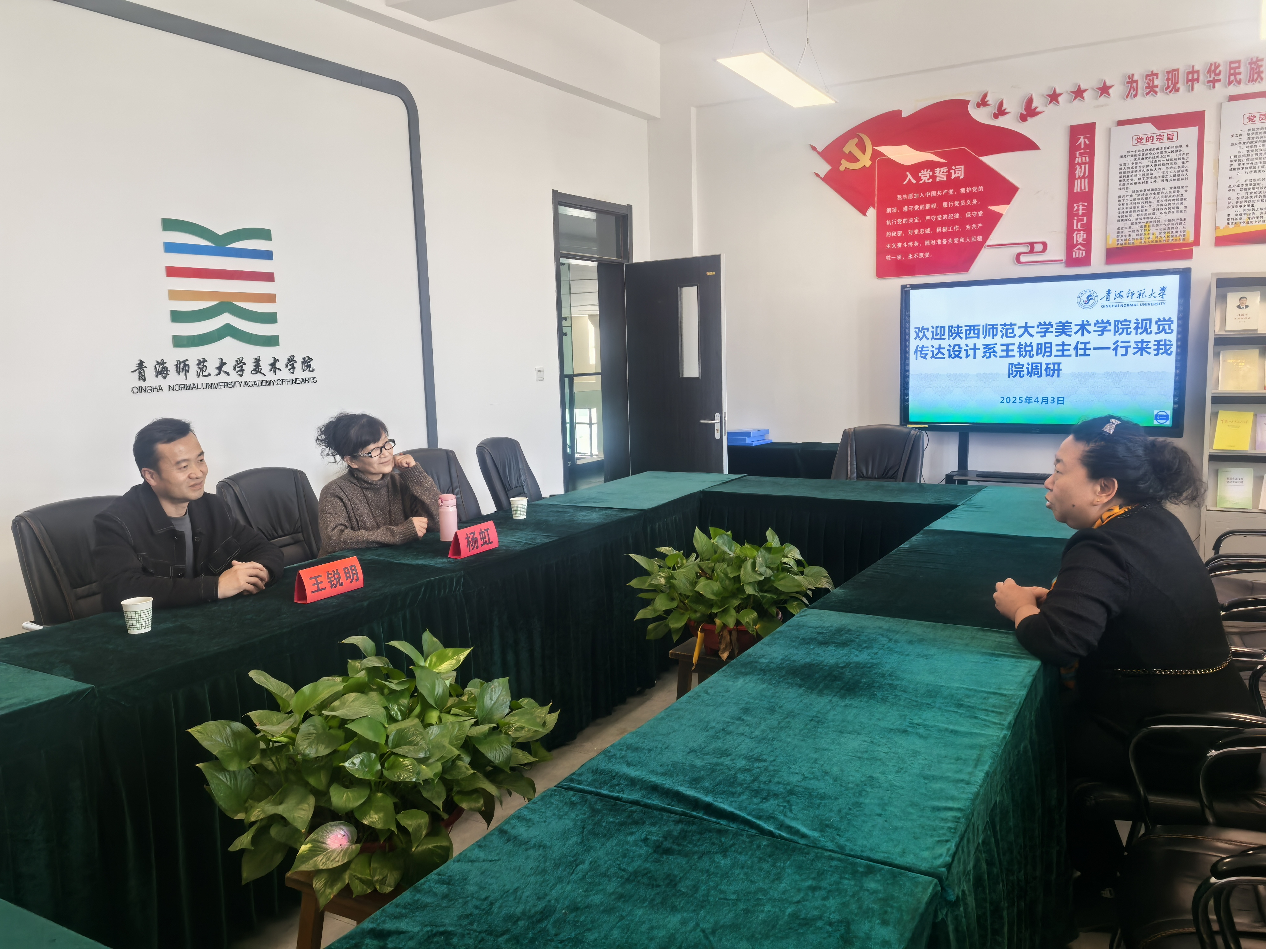 4月3日,陕西师范大学2026世界杯官网视觉传达设计系主任王锐明、副主任杨虹一行到访2026世界杯官网进行学术交流。2026世界杯官网设计系主任王薇及相关教师代表参与会谈,双方围绕团队建设、人才培养、产教融合及校际合作等议题展开深入探讨。