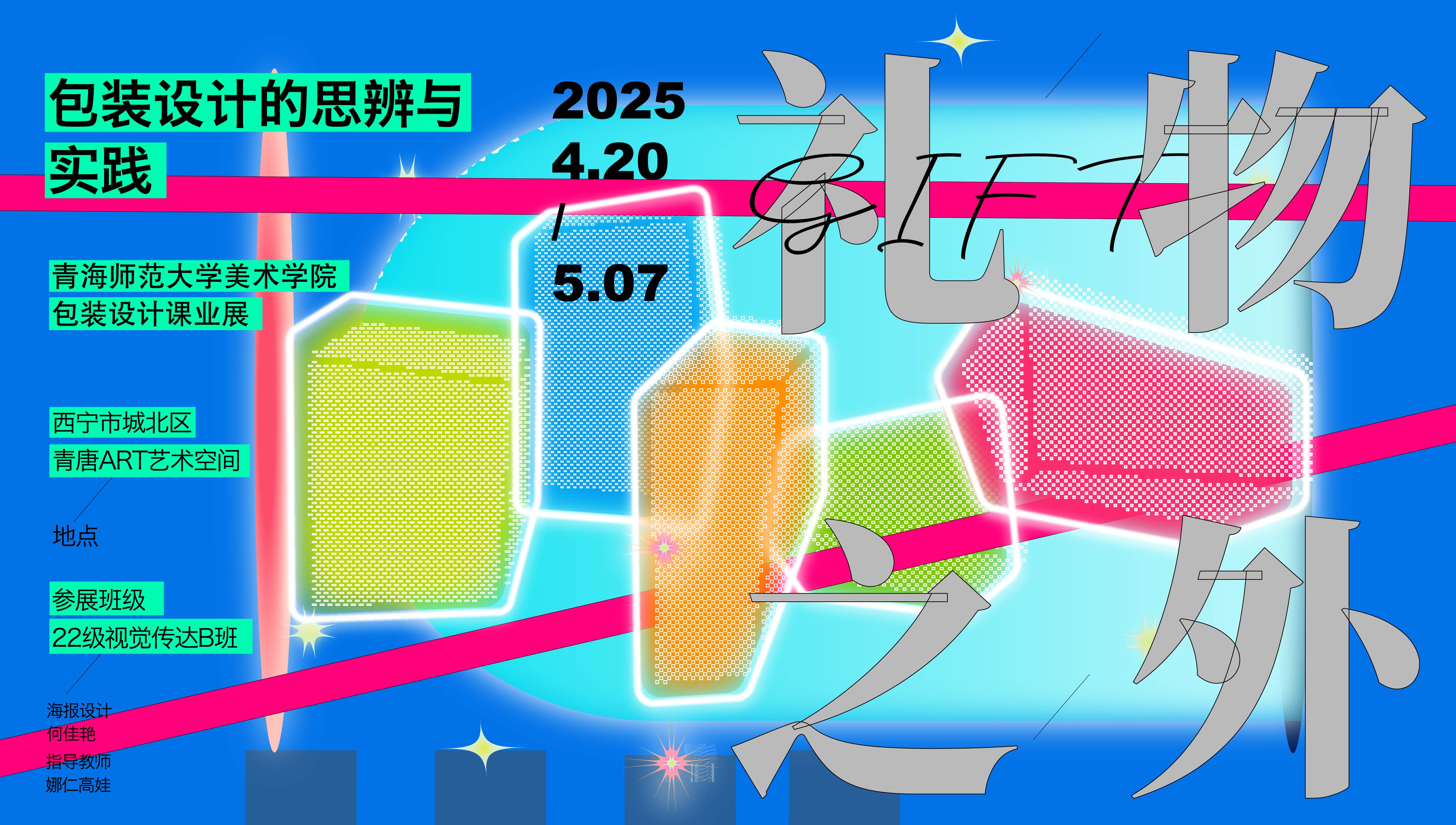展览以“礼物”为主题概念,鼓励员工跳脱包装设计既有的形式规范与功能限定,从文化、情感与社会的角度重新思考包装的意义。设计实践紧扣地方发展需求,聚焦青海地域文化与自然资源,围绕地方特产、城市服务等实际对象进行调研与创作。充分体现了“以教学服务地方、以设计回应现实”的教学理念。