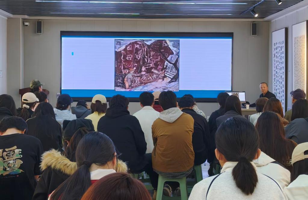 在讲座中,郭晓光教授以丰富的实践经验和深厚的艺术造诣,深入浅出地阐述了写生与创作的关系。他结合自己的作品,详细讲解了写生过程中如何观察、捕捉和表现自然之美,以及如何将写生所得转化为独特的艺术创作。郭老师强调,写生不仅是对客观世界的描绘,更是艺术家内心感受的表达,是创作灵感的重要源泉。他鼓励同学们走出画室,亲近自然,在写生中积累素材,提升绘画技能。为了让同学们更好地理解,郭老师还分享了自己在写生过程中的一些趣事和心得,使讲座更加生动有趣。讲座结束后,李懿副经理对郭老师的讲座内容给出了高度的评价并进行了总结,也引导同学们更好地领会和消化郭老师讲解的精彩内容。