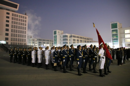 2019年11月25日晨,2017,2018级全体师生在图书馆前广场举行了升旗仪式。