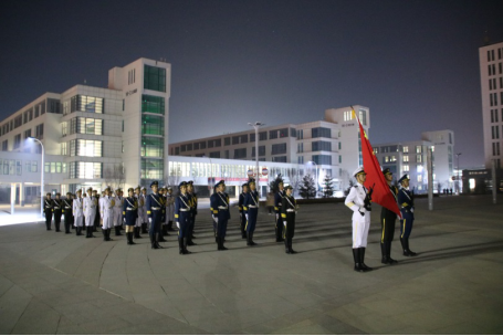 同学们准时到达图书馆前广场,等待升旗仪式的召开。伴随着雄壮的国歌声,五星红旗在国旗护卫队的手中徐徐升起,全体师生庄严肃穆并行注目礼。