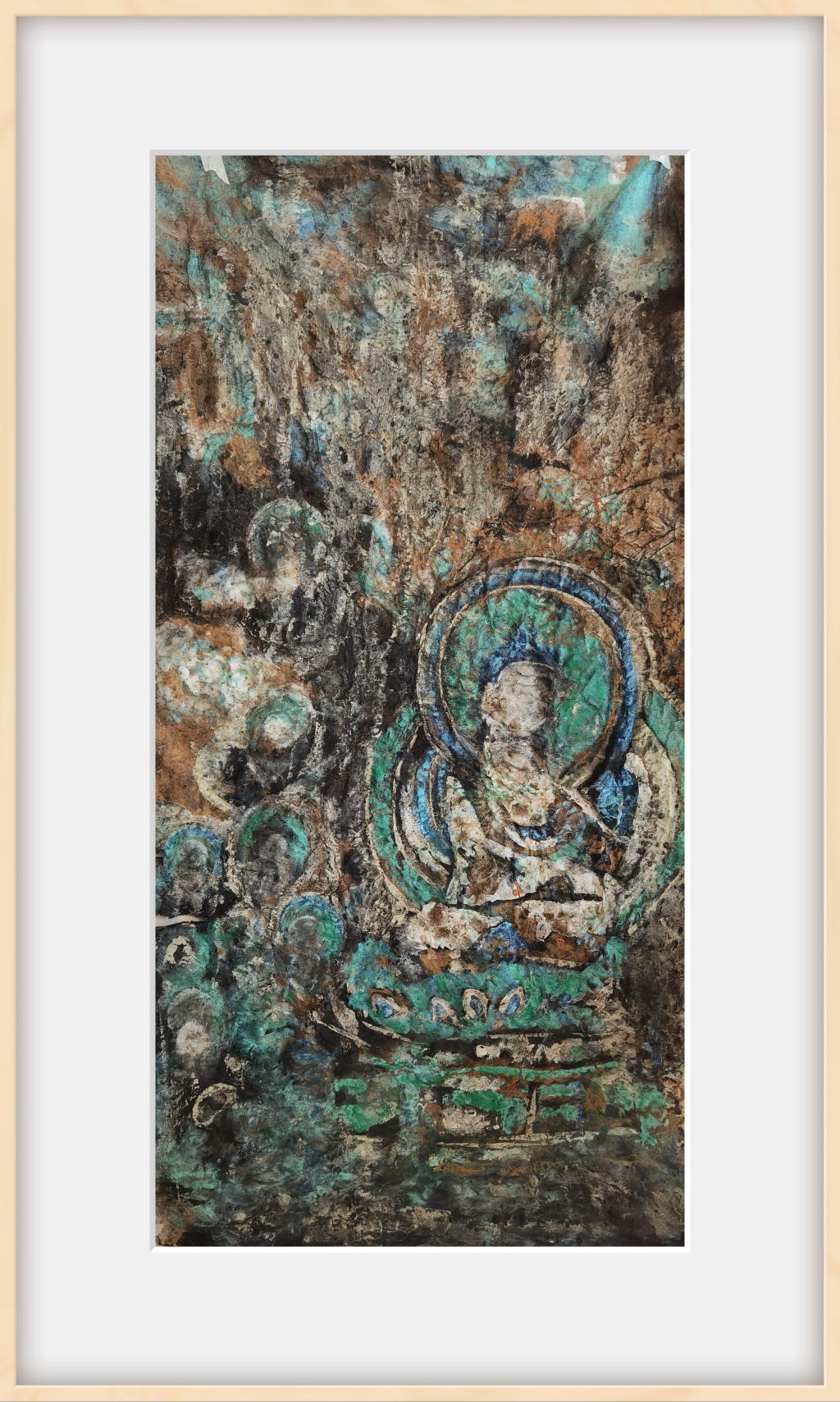 此作品为写意重彩,通过本人考察丝路上壁画遗存,通过写意重彩表现,体现丝绸之路上文明互鉴,艺术交流的文化生态意象之美。
